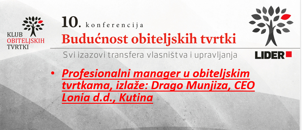 Predavanje Drage Munjize na konferenciji u organizaciji Lider-a “Budućnost obiteljskih tvrtki”, održanoj 8. Ožujka 2019. U Zagrebu